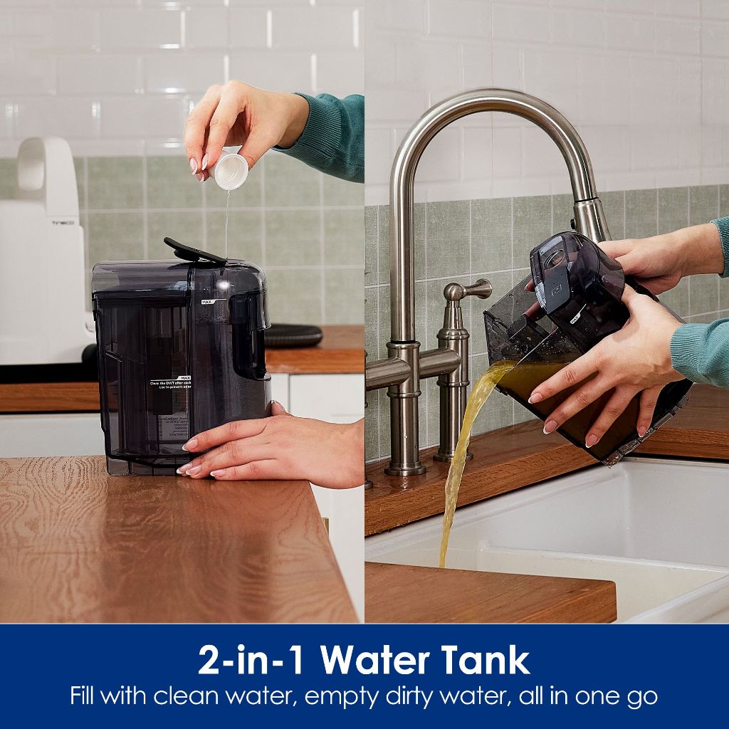 ๐๐ฎ๐๐ฅ ๐๐๐ง๐ค ๐๐ฒ๐ฌ๐ญ๐๐ฆ: To ensure that clean water and dirty liquid do not mix. This system ensures that your carpet is always rinsed with clean water. The clean water tank capacity is 800 ml, while the dirty water tank capacity reaches 600 ml, and both tanks are easy to remove, clean, and refill.