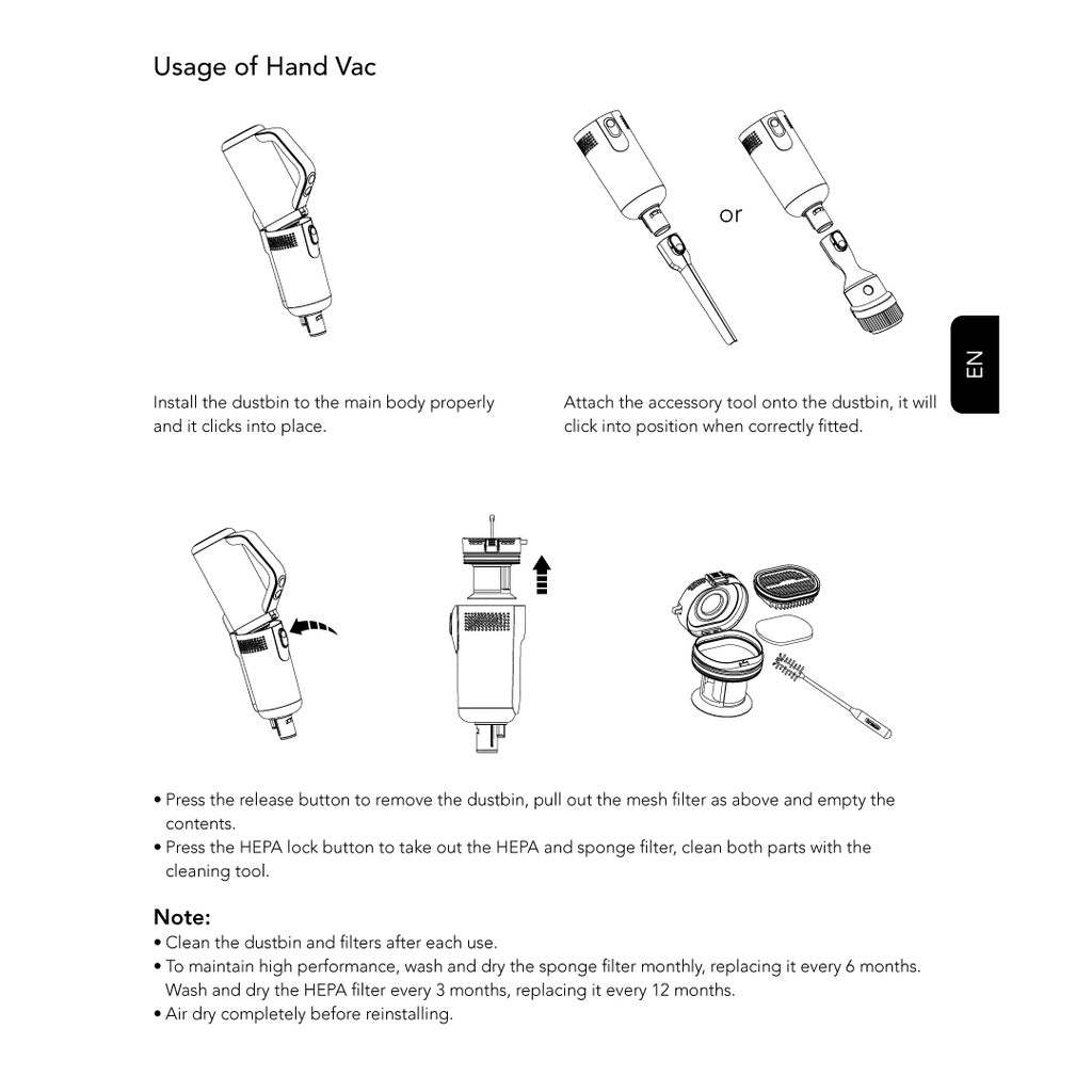 ToĀ betterĀ cleanĀ theĀ dustbin,Ā pressĀ theĀ dustbinĀ releaseĀ buttonĀ andĀ pullĀ out